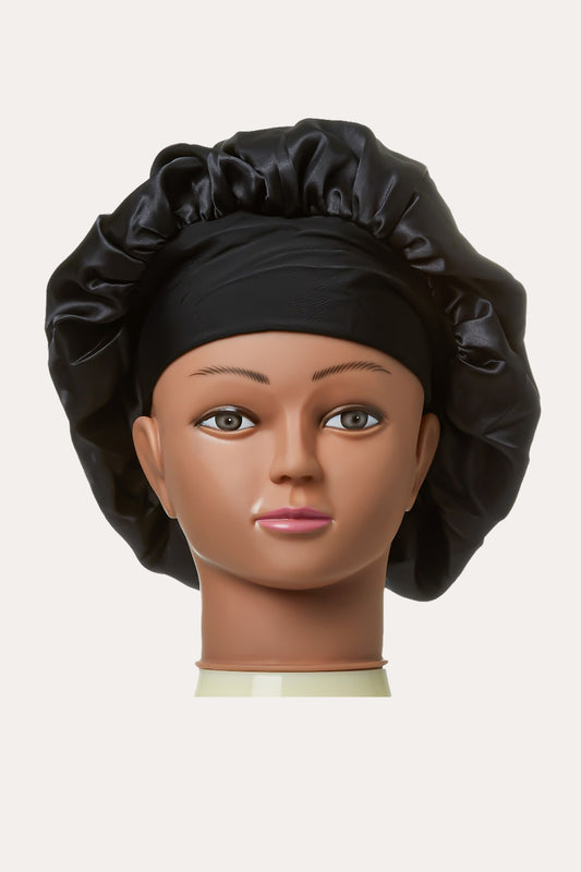 DONNA CAP OLIVE OIL TREATED WIDE BAND BONNET BLACK #22044