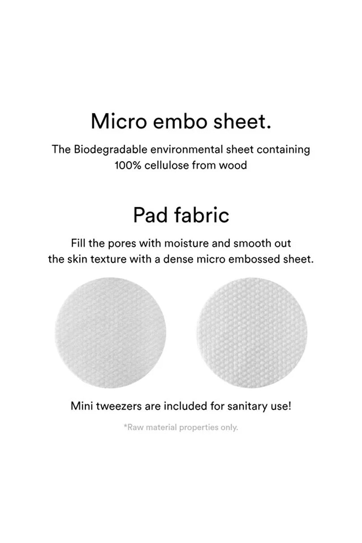 Each pad features a 100% cellulose micro-embossed sheet that adheres closely to the skin, filling pores with moisture and refining texture. Hypoallergenic and suitable for all skin types—including easily irritated skin.