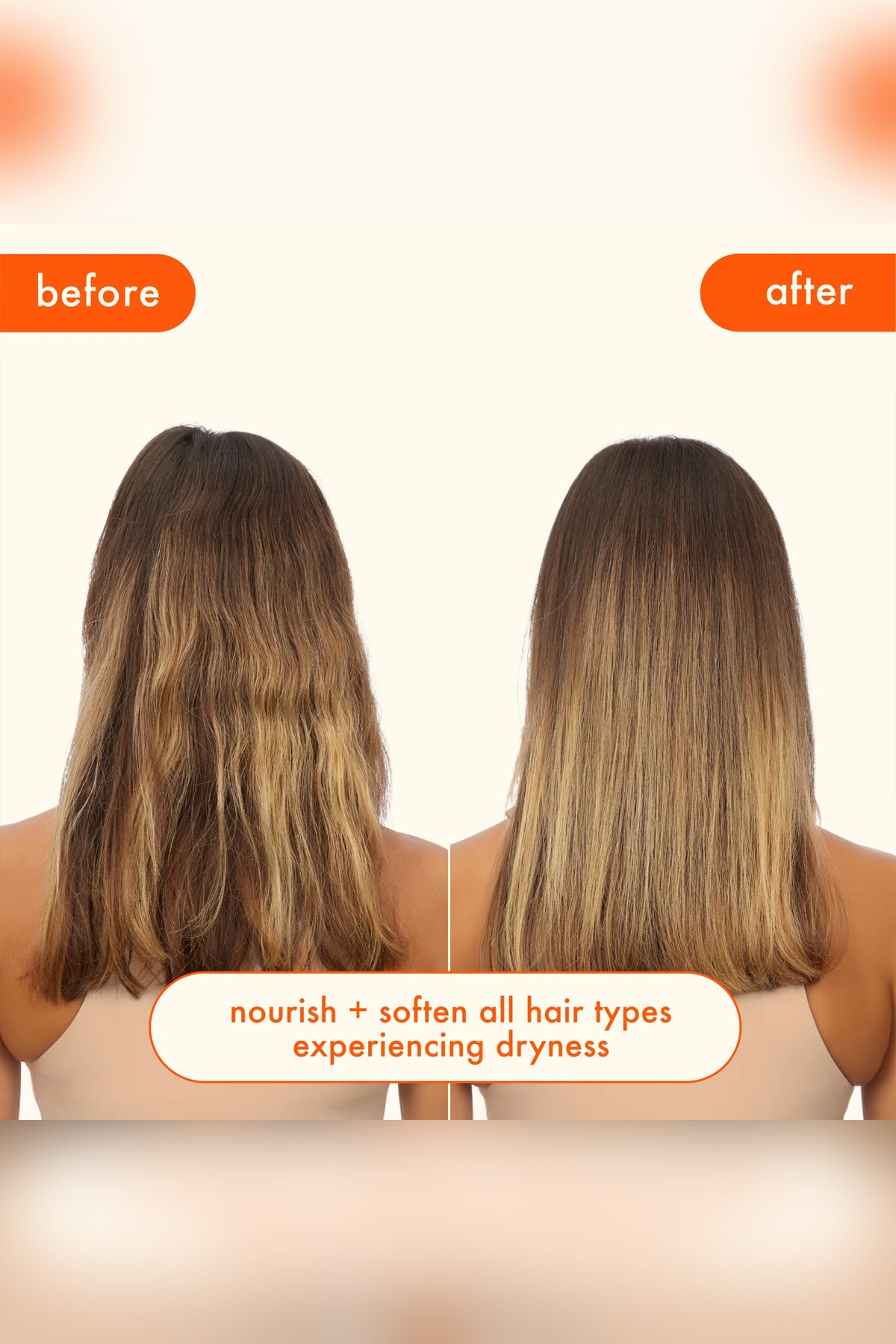 Infused with jojoba seed oil and nutrient-rich sea buckthorn, this mask works to restore essential lipids, increase manageability, boost shine, and deeply nourish from root to tip. Clinically proven to deliver 11.4x more moisture and 91% more manageability after one use.