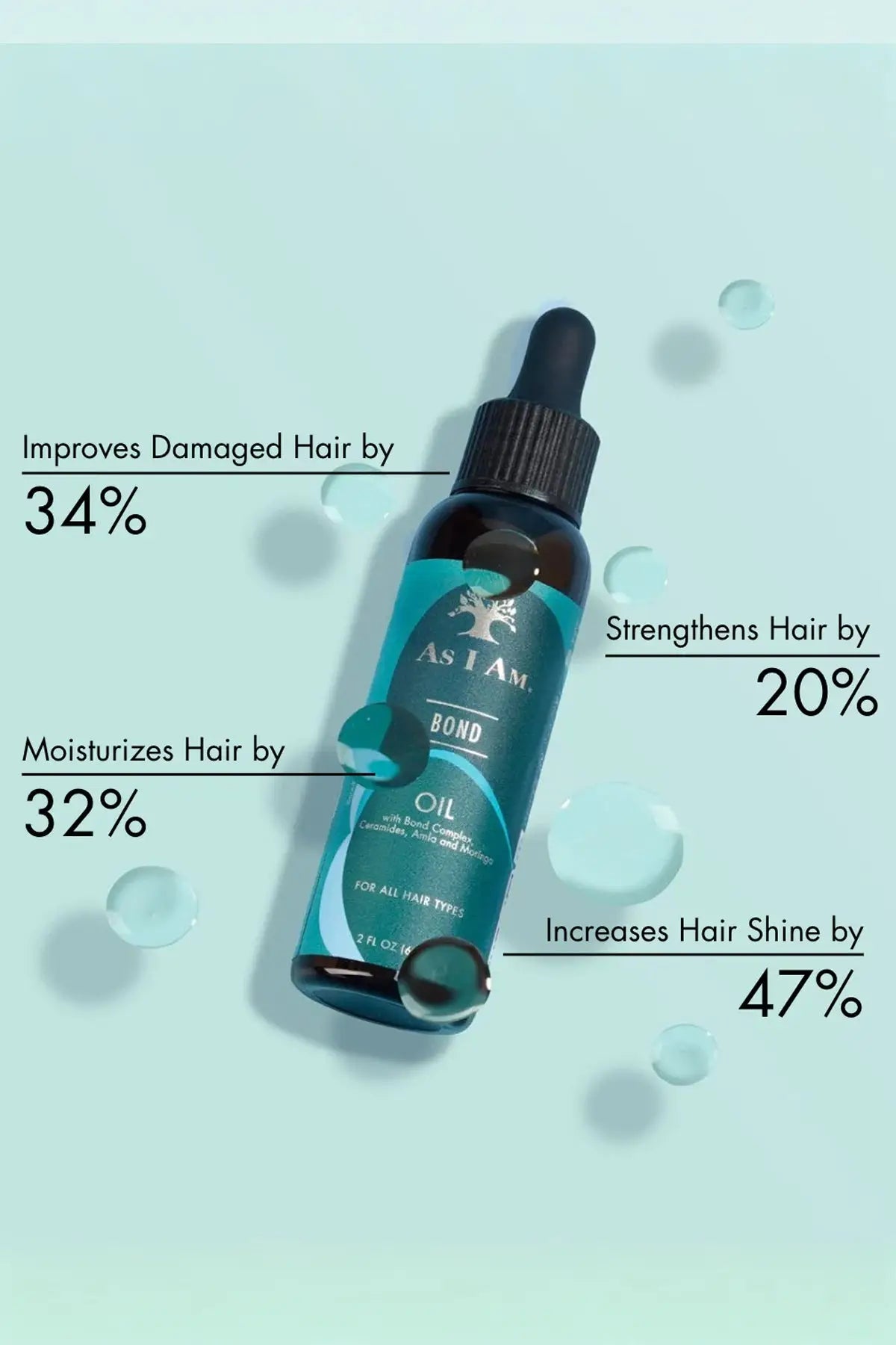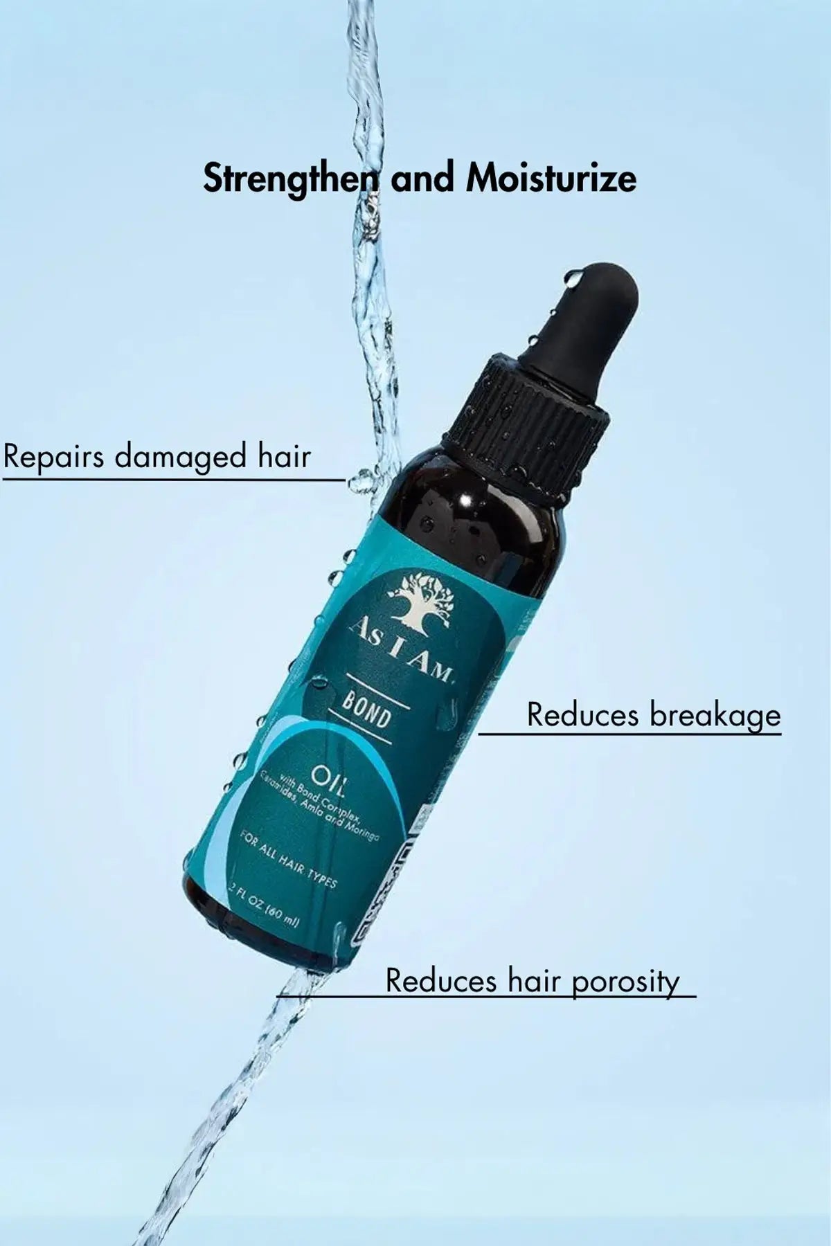 AS I AM BOND REPAIR HAIR OIL is a lightweight yet powerful treatment oil designed to repair damaged hair, reduce breakage, and restore shine using advanced Bond Complex Technology. This nourishing formula penetrates deeply into the hair fiber to strengthen weakened bonds, seal split ends, and improve overall hair resilience without weighing hair down.
