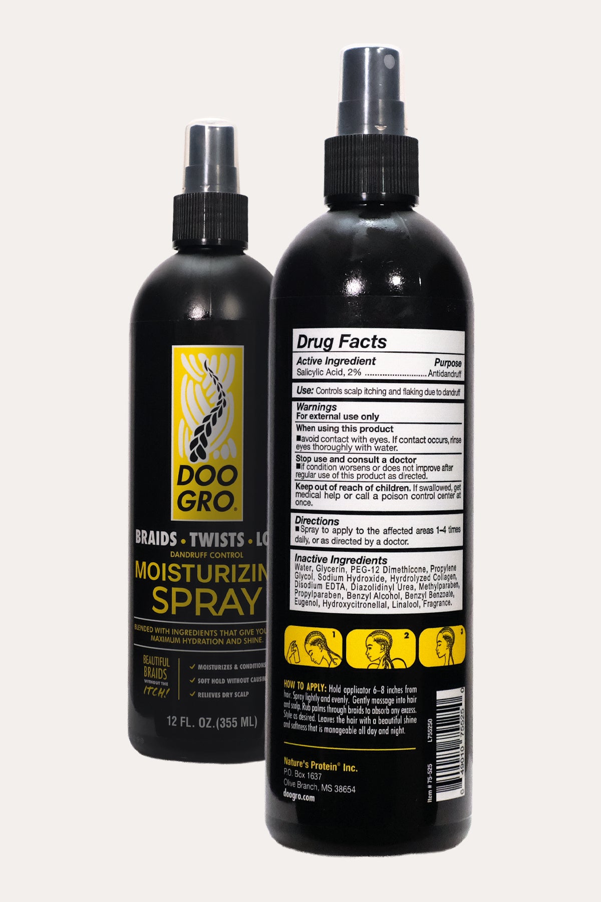 Doo Gro Braids • Twists • Locs Scalp Spray is a lightweight moisturizing spray designed to care for the scalp and hair while wearing protective styles. Formulated to hydrate and condition, this spray helps keep braids, twists, and locs looking fresh, soft, and manageable with a healthy-looking shine.