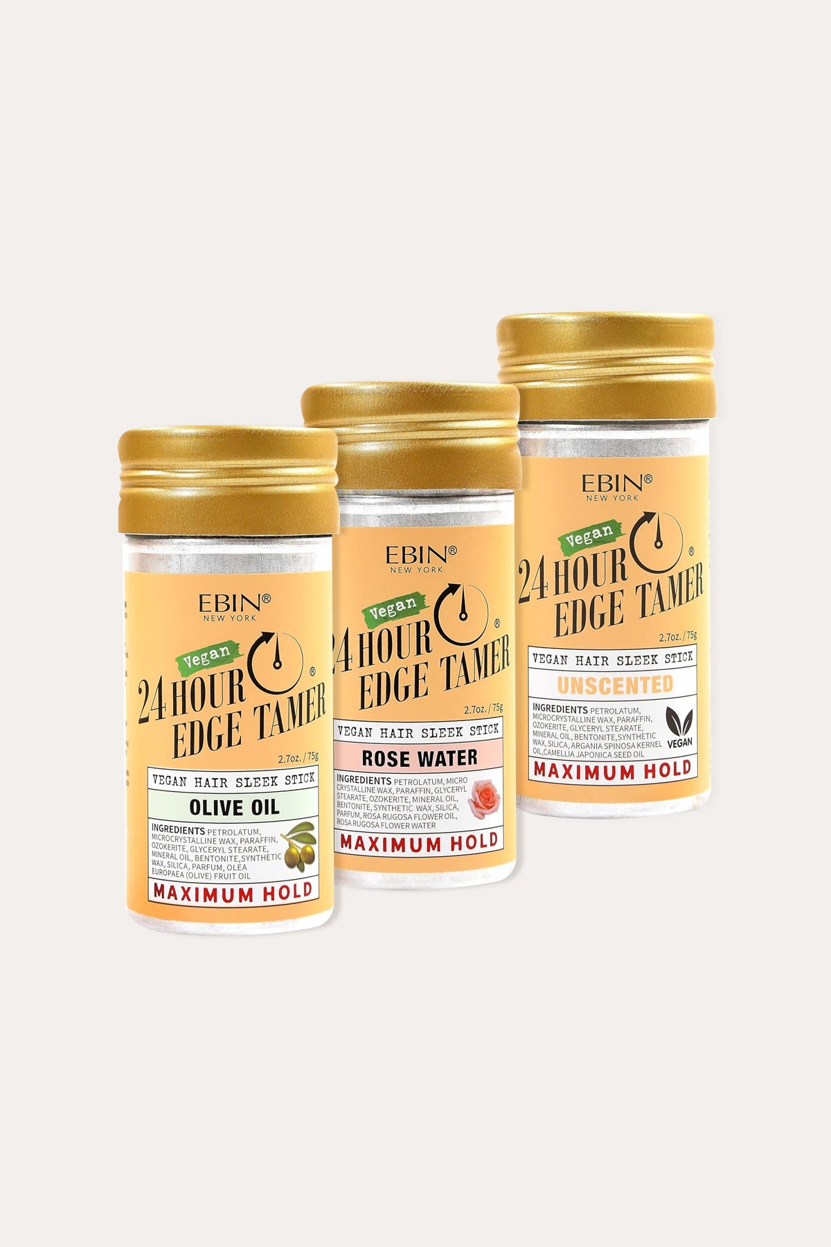 The EBIN 24 Hour Edge Tamer Vegan Hair Sleek Stick is a convenient, easy-to-use styling solution designed to smooth edges, tame flyaways, and create polished hairstyles with lasting hold. Available in three gentle, plant-inspired formulas—Olive Oil, Rose Water, and Unscented—this vegan-friendly stick helps keep your style sleek and controlled all day long.