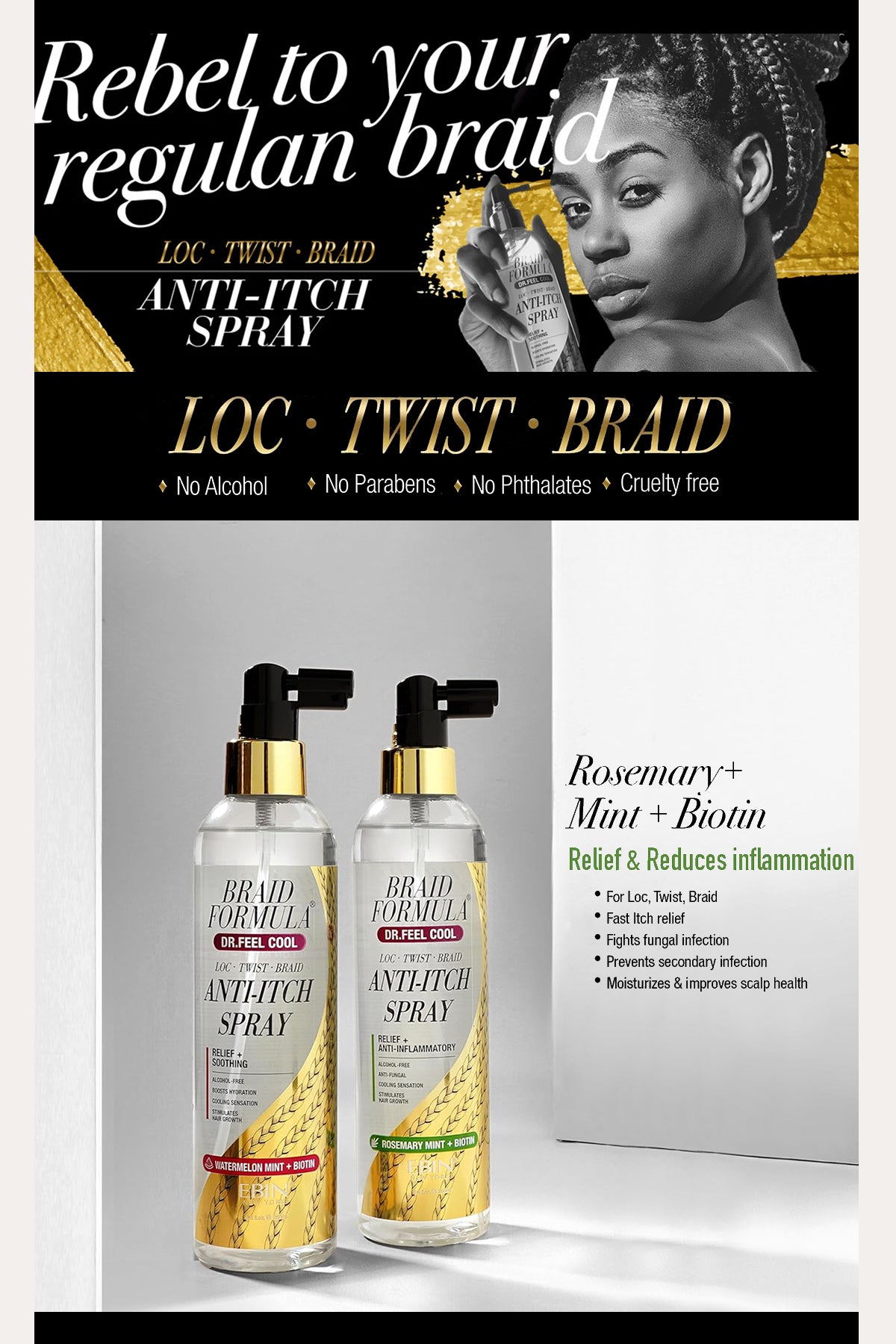 ♥ [ANTI-ITCH SPRAY] Our Braid Formula Anti-Itch Spray is specially designed product that addresses the itching and irritation associated with protective hairstyles. Our Anti-itch Spray offers a convenient and effective solution for managing scalp itchiness and discomfort.