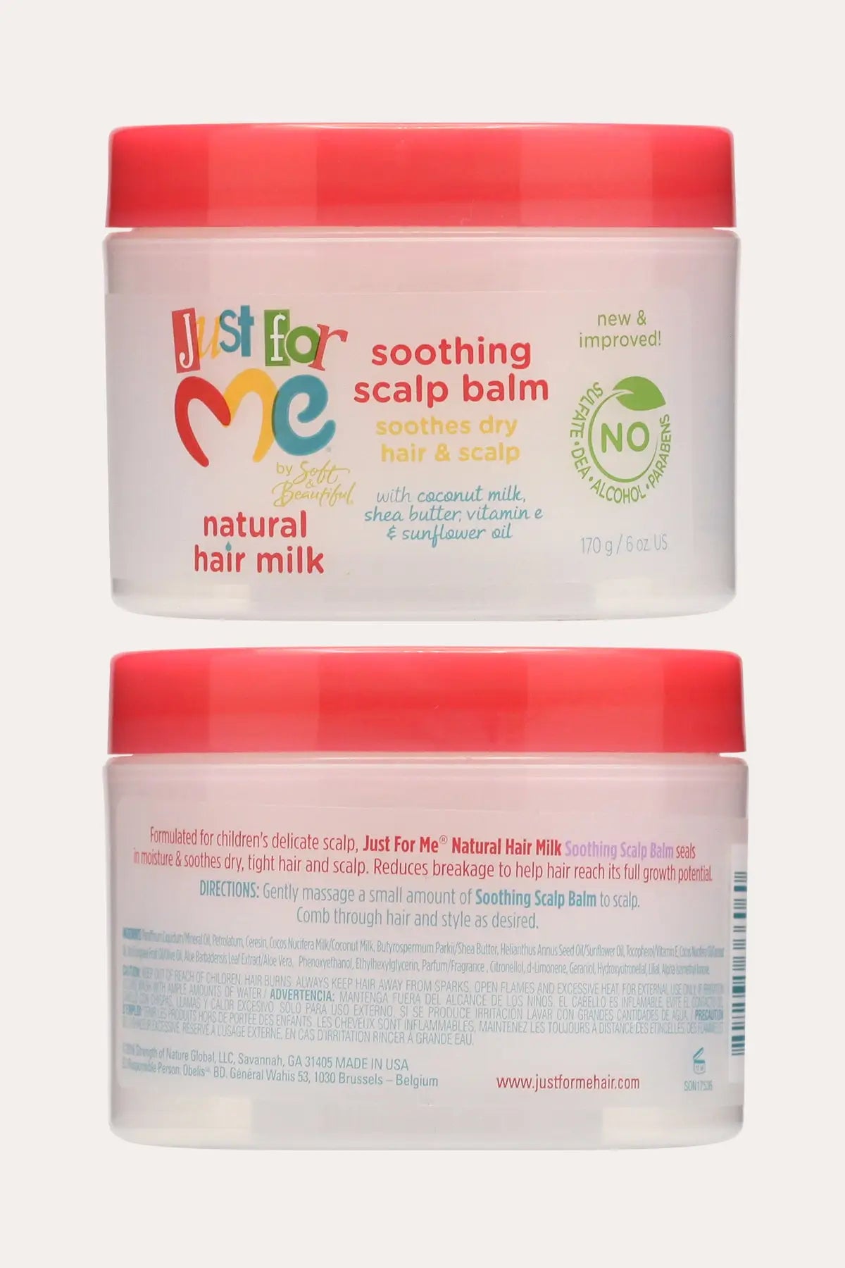 Formulated for children's delicate scalp, Just For Me Natural Hair Milk Soothing Scalp Balm seals in moisture & soothes dry, tight hair and scalp. Reduces breakage to help hair reach its full growth potential.