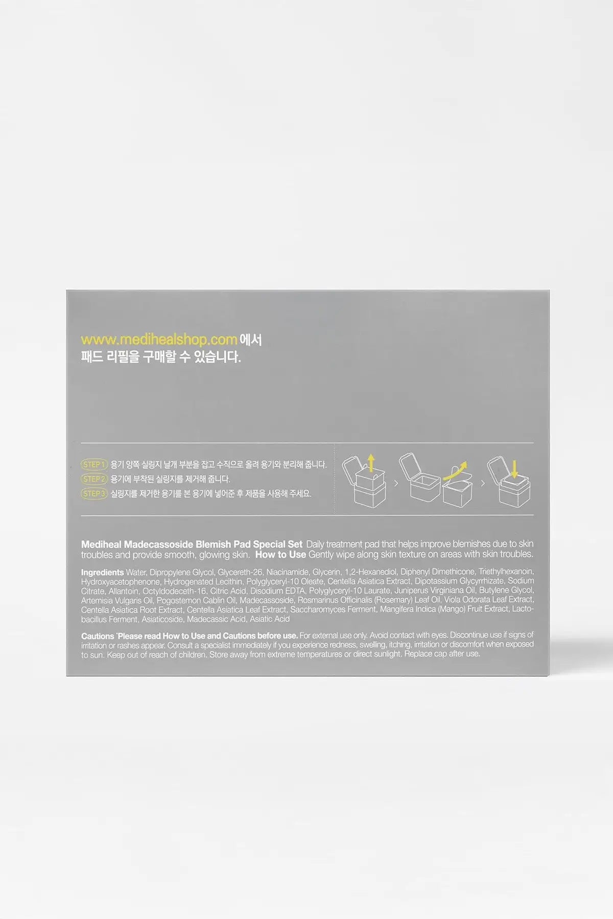 The Mediheal Madecassoside Blemish Pad is a soothing, pre-soaked toner pad designed to refresh the skin and improve overall texture. Formulated with 30% Madecassoside and Centella-derived ingredients, it helps calm irritation, support skin balance, and enhance clarity.