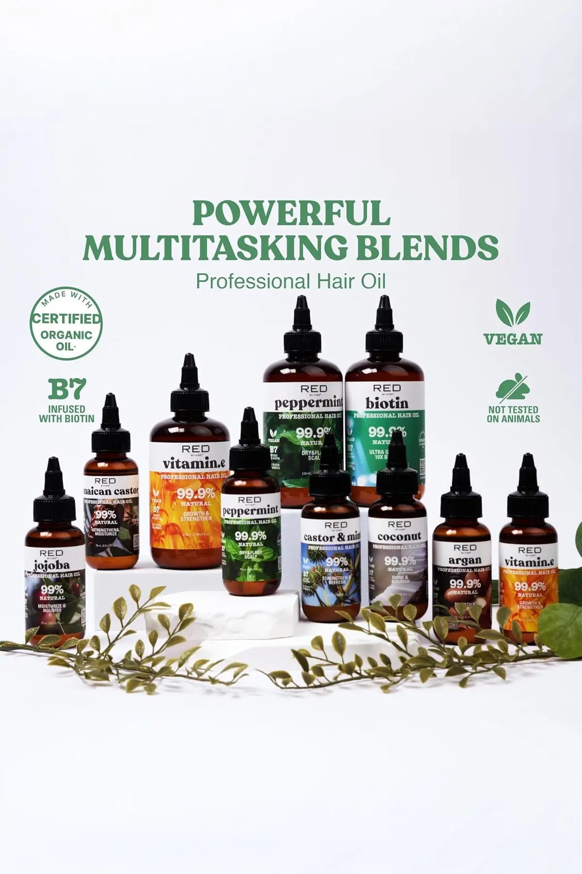Experience powerful, multitasking blends with RED By Kiss Professional Hair Oil, designed to deeply nourish, strengthen, and restore all hair types. Each formula is crafted with 99% natural oils, enriched with certified organic ingredients, and infused with key nutrients to promote healthy, shiny, and resilient hair.