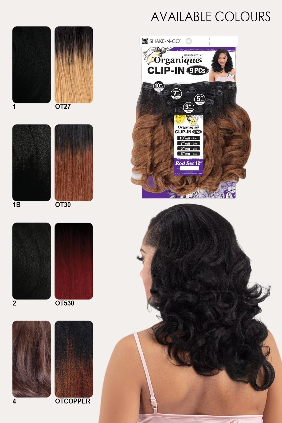 The Organique 9pcs Clip-In Rod Set 12" by Shake-N-Go is a must-have essential for effortless volume and instant length.
