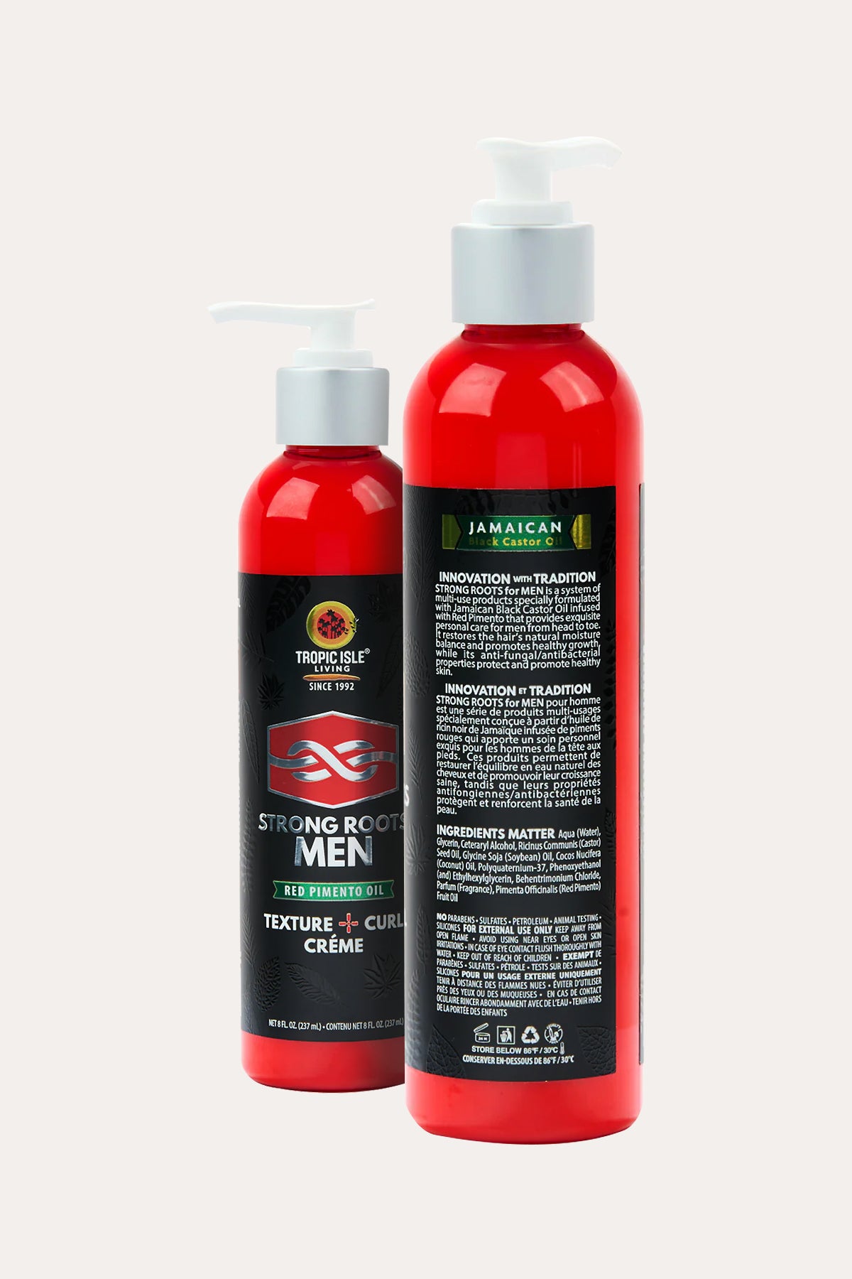Strong Roots Men Texture + Curl Crème is uniquely blended with Jamaican Black Castor Oil infused with Red Pimento that delivers flexible hold and shine with easy manageability, helping to eliminate breakage while keeping your hairstyles and cuts healthy.